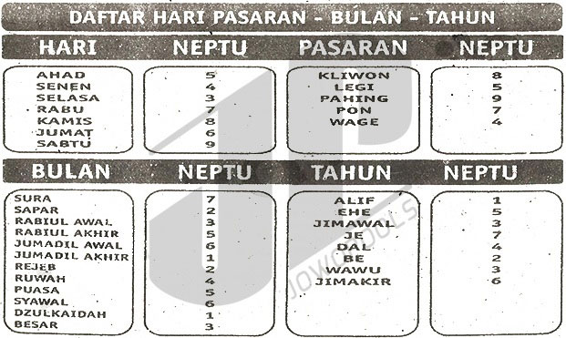 berikut ini HARI DAN ANGKA PASARAN JAWA :